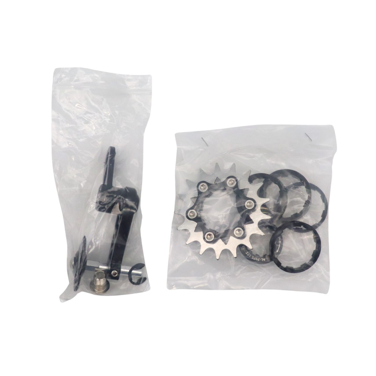 Adaptador para conversão de roda livre HG cassete multivelocidades para catraca única de 17 dentes em alumínio com anéis espaçadores e trava + tensionador de corrente para uso em bicicleta de marcha única com ajuste de tensão em alumínio.