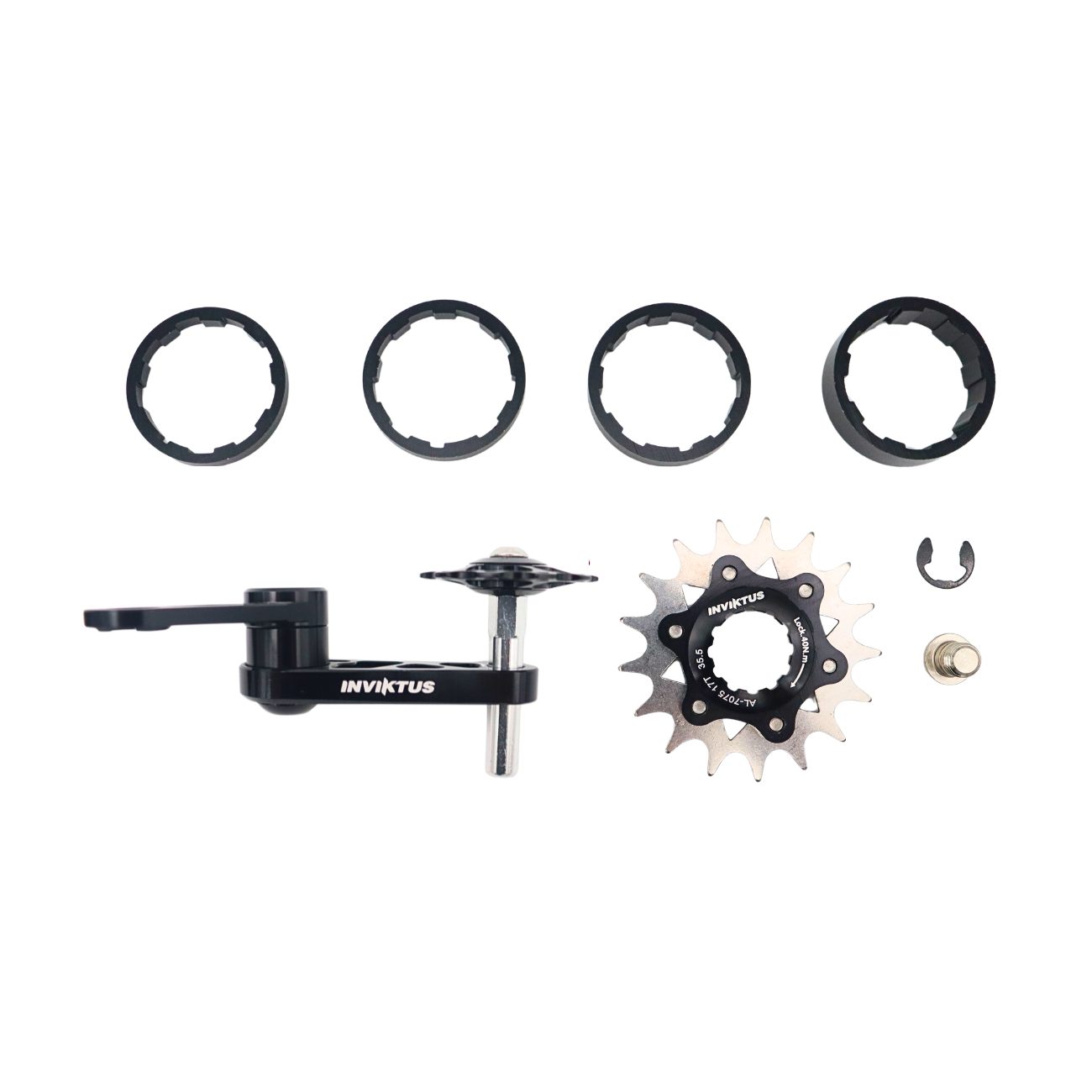 Kit Single Speed Adaptador K7 17D e Tensionador de Corrente em Alumínio Preto Inviktus