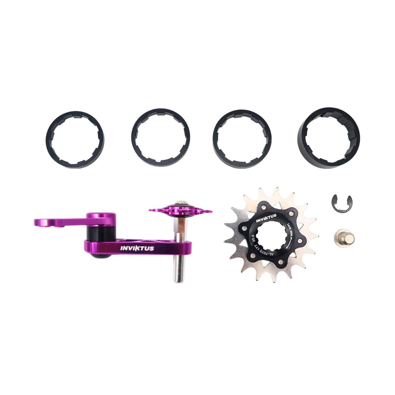 Kit Single Speed Adaptador K7 17D e Tensionador de Corrente em Alumínio Roxo Inviktus